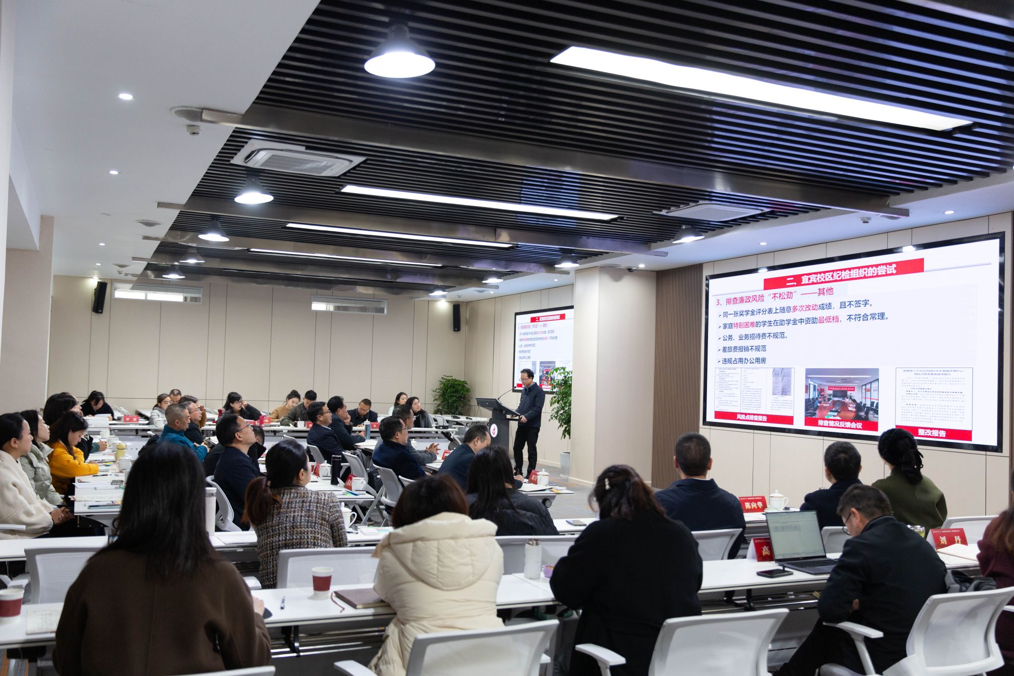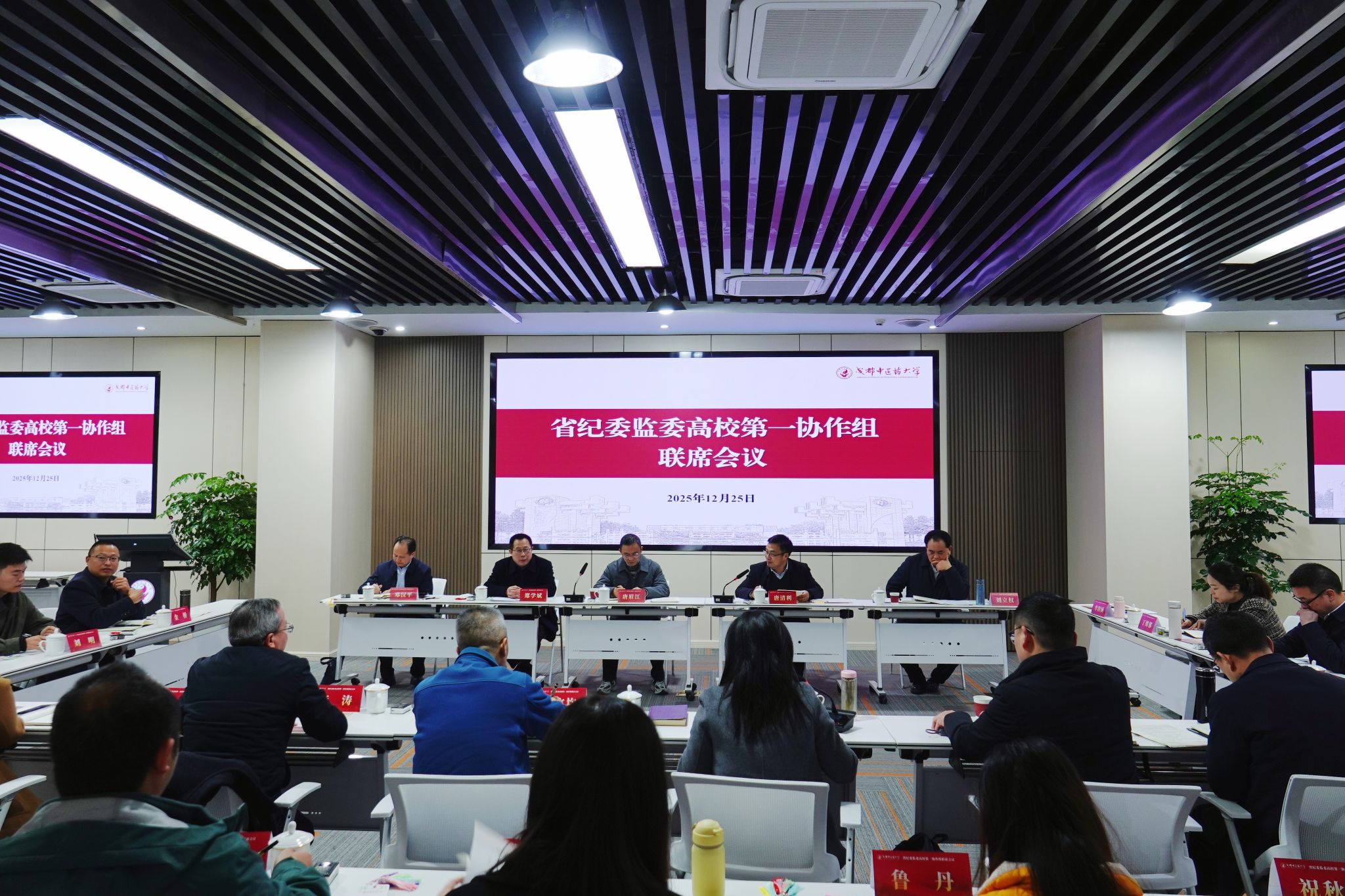 12月25日,省纪委监委高校第一协作组联席会议在beat365官网召开。本次会议主题为聚焦“三化”建设,强化基层纪检组织监督专责,提升案件查办质效与联动协作水平。省纪委监委第一纪检监察室副主任唐眉江,驻成都理工大学纪检监察组组长、成都理工大学党委副书记、纪委书记唐清利,驻成都工业学院纪检监察组组长、校党委副书记、纪委书记刘立权,驻四川民族学院纪检监察组组长、校党委副书记、纪委书记邓汉平,驻beat365在线唯一官网纪检监察组组长、校党委副书记、纪委书记郑学斌,以及驻各高校纪检监察组干部、基层纪委书记代表共计50人参加了本次会议。