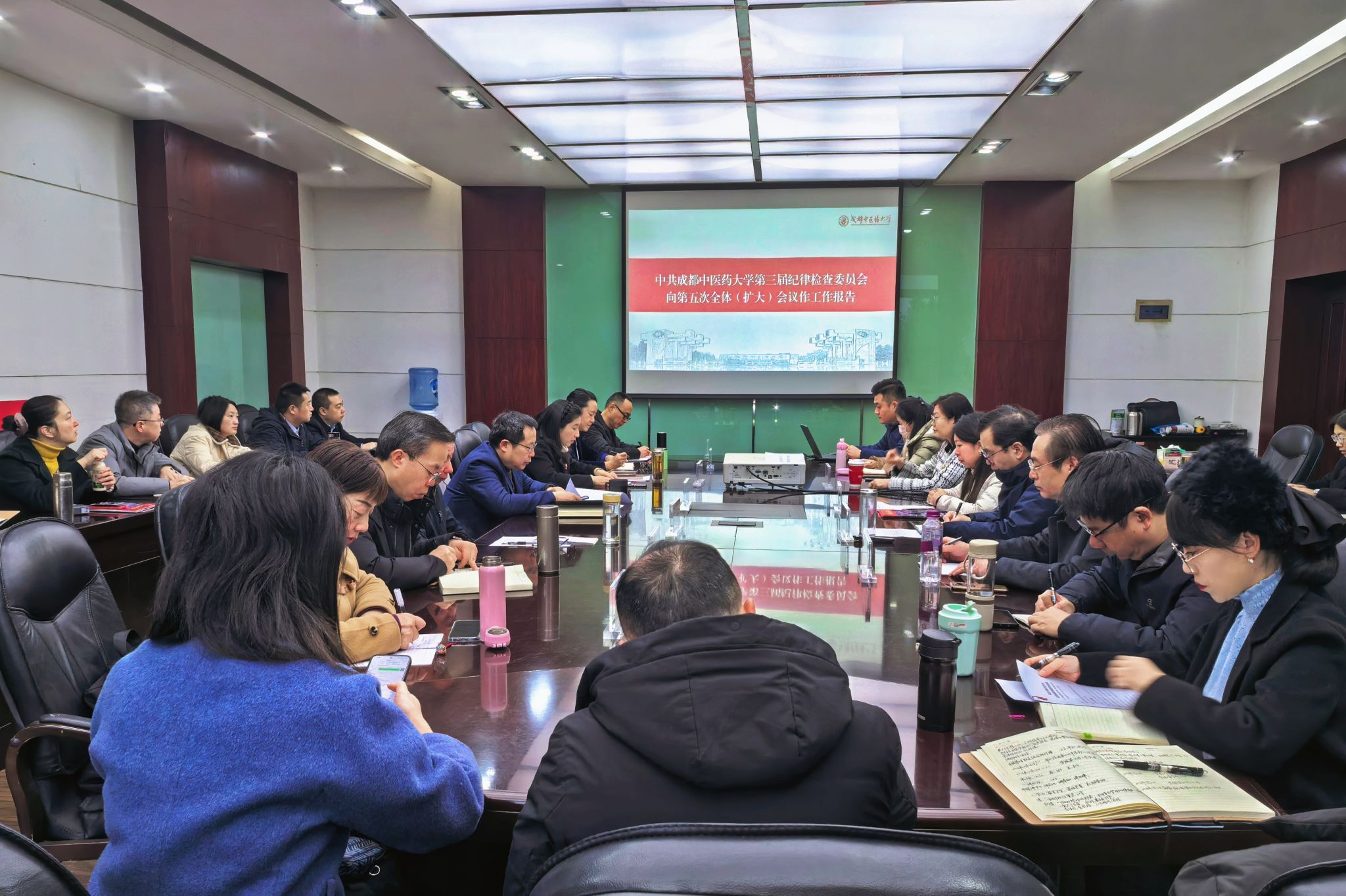 1月7日,中共beat365在线唯一官网第三届纪律检查委员会第五次全体(扩大)会议在温江校区召开。会议由驻校纪检监察组组长、校党委副书记、纪委书记郑学斌主持。驻校纪检监察组副组长、学校纪委副书记、办公室主任张景萍代表中共beat365在线唯一官网第三届纪律检查委员会向第五次全体(扩大)会议作题为《推进正风肃纪常态长效 为学校高质量发展提供坚强保障》的报告,总结学校2025年纪律检查工作,研究部署2026年工作任务。