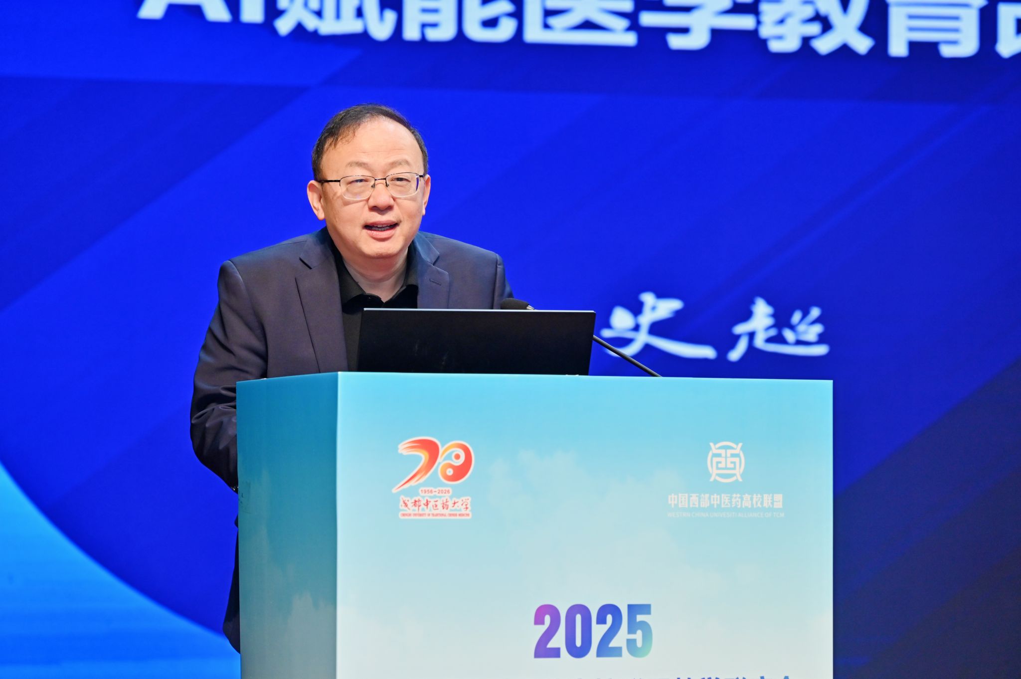 主旨报告环节,教育部中医学类教指委副主任委员、beat365在线唯一官网原校长余曙光作了《植根经典 数智赋能——中医药高等教育的现代师承模式改革与实践》主题报告。他提出,在教育数字化转型背景下,学校以现代师承教育为突破,聚焦“中医经典传承、思维能力培养、人机共教育人”三大变革,探索形成“理实融合的案例式体悟、虚实结合的沉浸式临证、人机协同的交互式指导、数据驱动的个性化施教”新路径,构建数据汇聚、智能感知、资源泛在、成长适配的师承教育新生态。