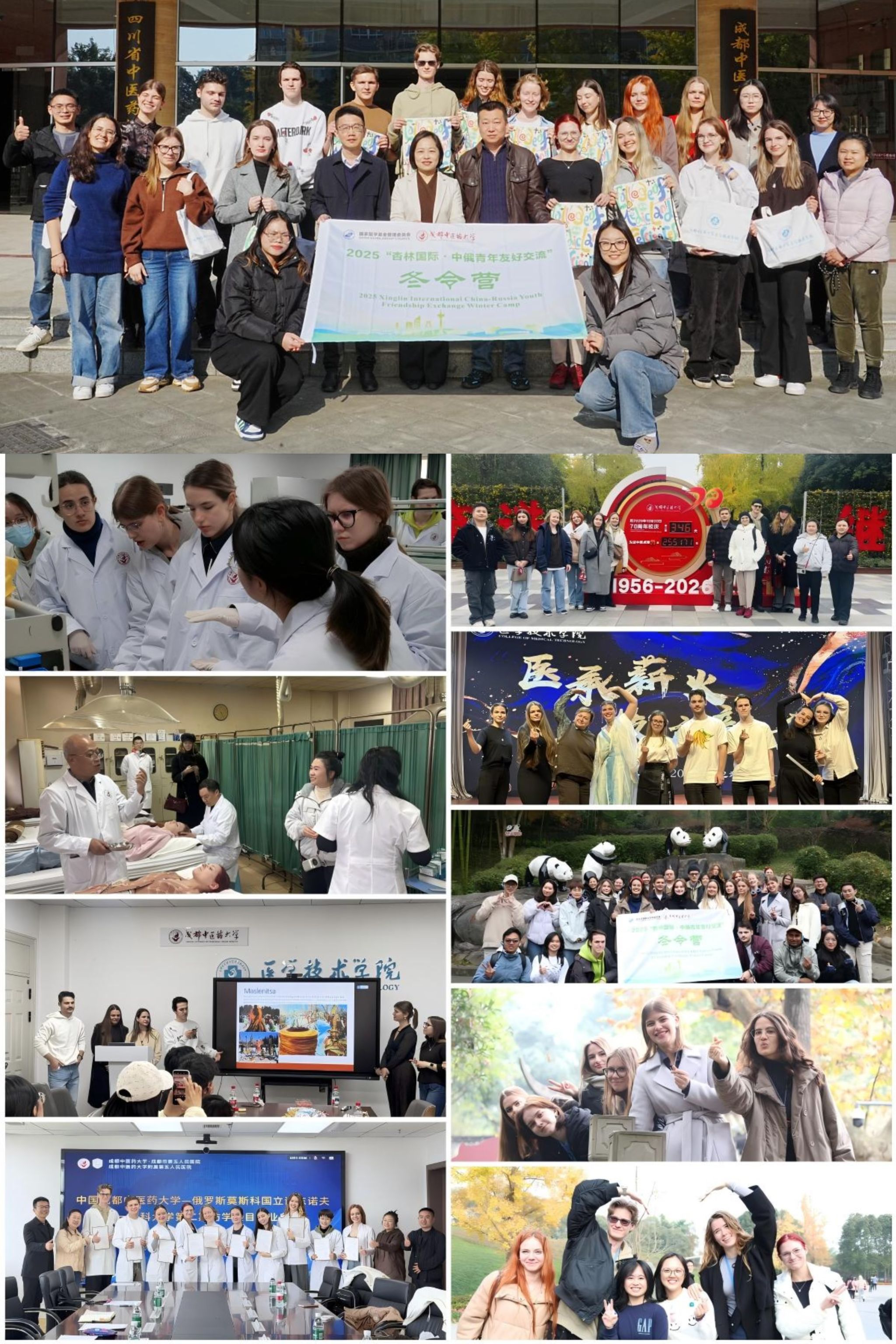 中俄青年结挚友,医文互鉴谱新章。国际月期间,学校还成功举办了“杏林国际·中俄青年友好交流冬令营”,20名来自俄罗斯谢东诺夫第一医科大学医学生在一个月的时间里通过临床研习、中医体验、学术科研及产业文化探访,全方位感受中医药魅力与中国文化,实现中俄医学互学互鉴,增进两国青年跨文化友谊,为中俄医学教育合作与中医药国际传播筑牢基础。