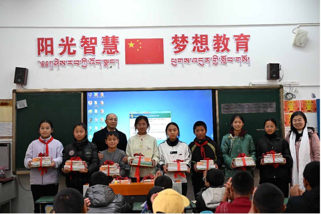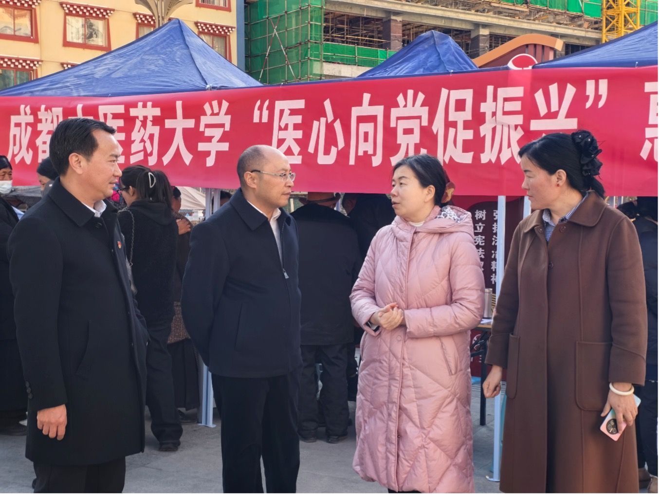 在得荣期间,曾芳一行组织“全国高校百个研究生样板党支部”——beat365在线唯一官网针灸推拿学院博士党支部师生党员,以及民族医药学院藏医专家,在得荣县太阳谷广场举行“医心向党促振兴”惠民义诊得荣行活动,参观考察得荣县中藏医院;看望慰问学校驻村干部、在得荣县九年一贯制学校开展寒假学生托管志愿服务的大学生支教团,向当地的小学生捐赠中医药文化普及读物,勉励他们勤奋学习、立志成才、茁壮成长。