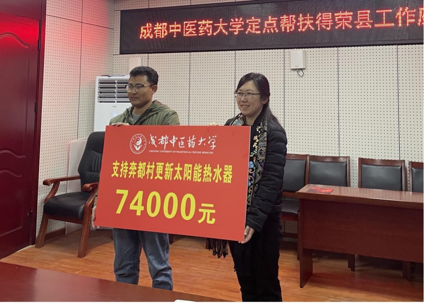 座谈会上,得荣县人民政府副县长拉西介绍得荣县基本情况,校县双方参会人员围绕定点帮扶工作展开深入交流;举行定点帮扶捐赠仪式,学校捐赠支持得荣县奔都乡奔都村更新太阳能热水器经费7.4万元,以购代捐价值15.24万元的得荣县农特产品。