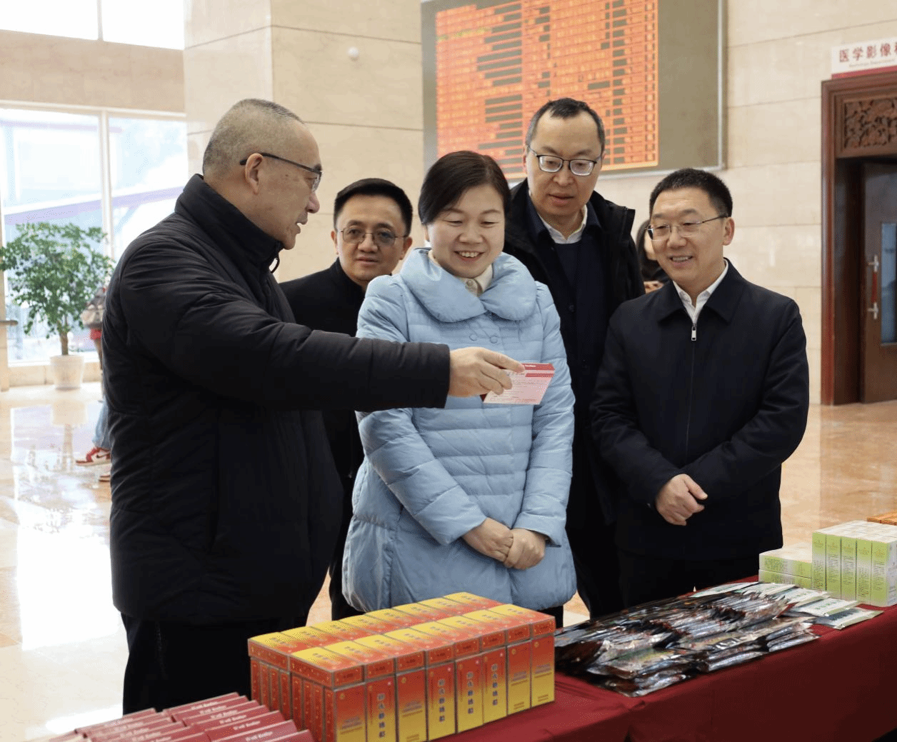 张泽钧、曾芳一行在沈海、李道丕等陪同下,参观了医院 “骨魂赋” 文化展示区、院内制剂陈列区、急诊科、运动医学科及康复科。