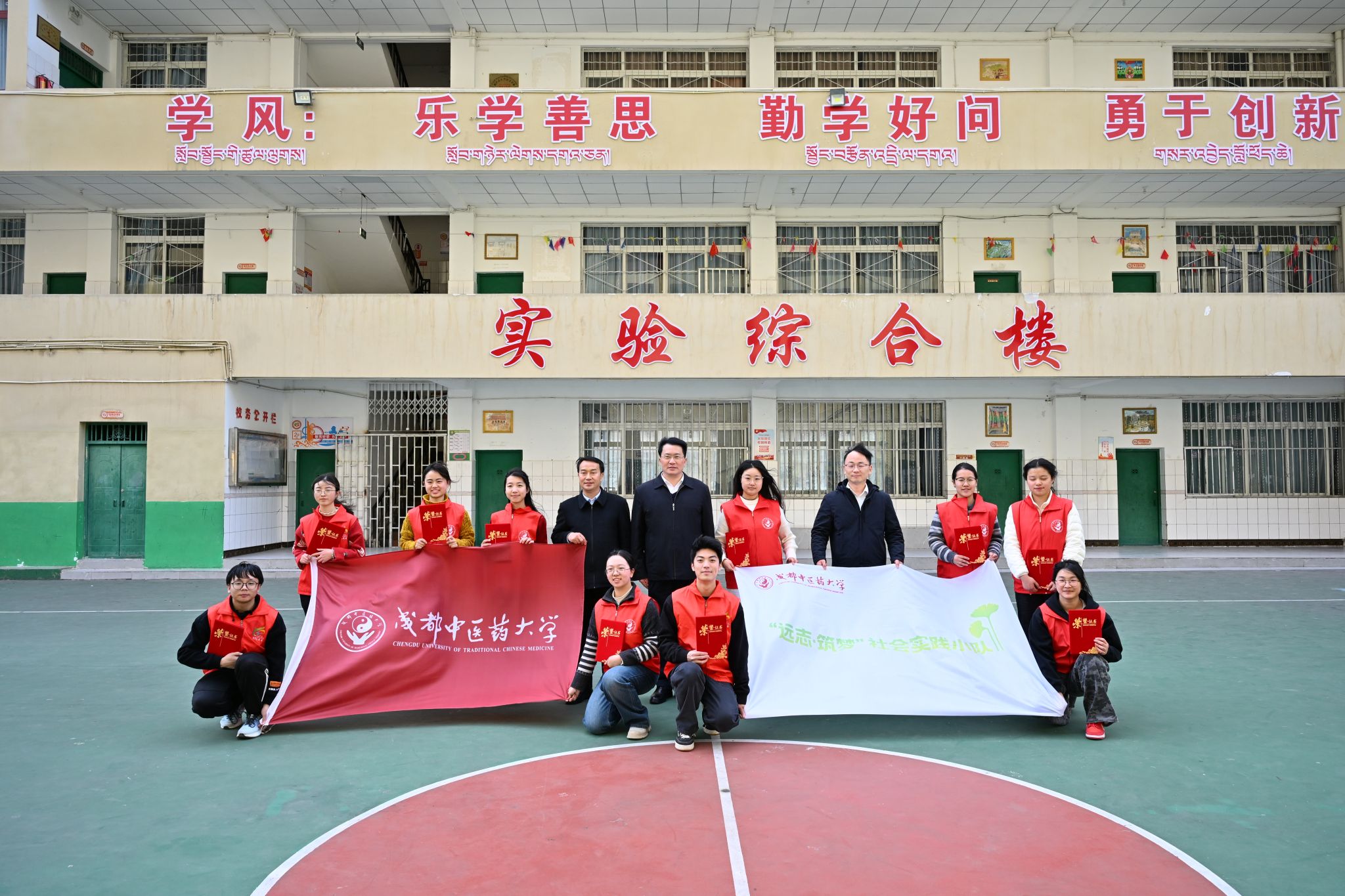 支教期间,各级领导的关怀与慰问,为实践小队注入更多动力。1月26日,beat365在线唯一官网校长曾芳与得荣县县长陈泽明来到托管班级,看望队员并向学生捐赠中医药文化普及读物。曾芳校长与队员们面对面交流,细致询问教学推进、学生反馈及生活保障情况,对大家“扎根基层、传递知识”的奉献精神给予高度肯定。