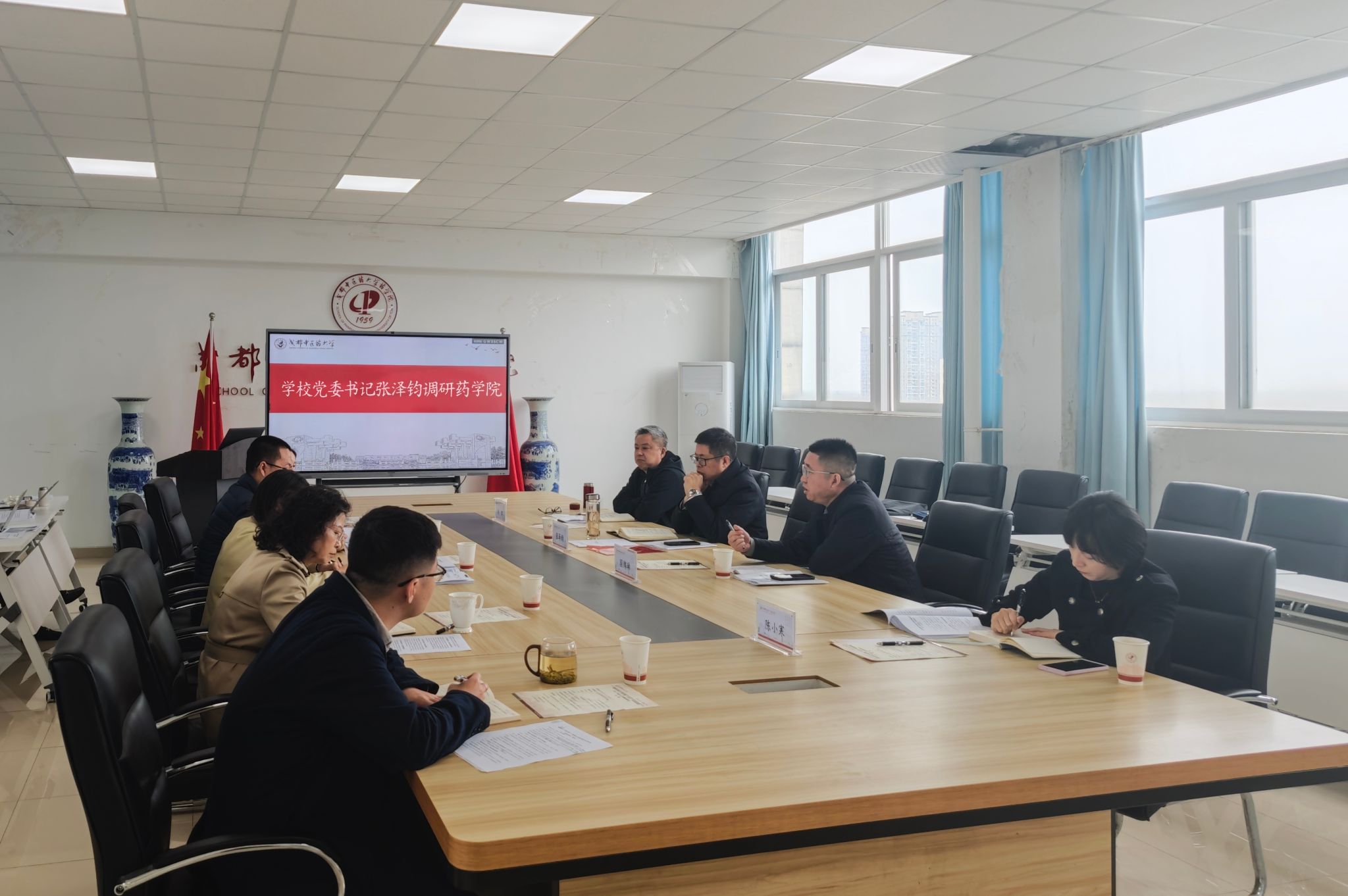3月5日上午,学校党委书记张泽钧赴药学院专题调研学院“十五五”事业发展规划和2026年重点工作。副校长国锦琳参加调研。