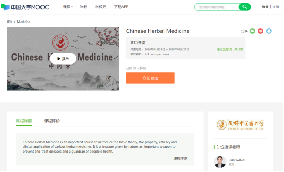 其中,beat365官网针灸学(Acupuncture and moxibustion)、中药学(Chinese Herbal Medicine)、饮食文化与中医学(Diet Culture and Traditional Chinese Medicine)、中医老年病学(Geriatrics of Traditional Chinese medicine)、中药药剂学(Pharmaceutics of chinese material medica)5门课程入选两个国际慕课平台首批上线课程。