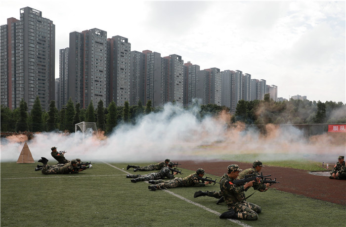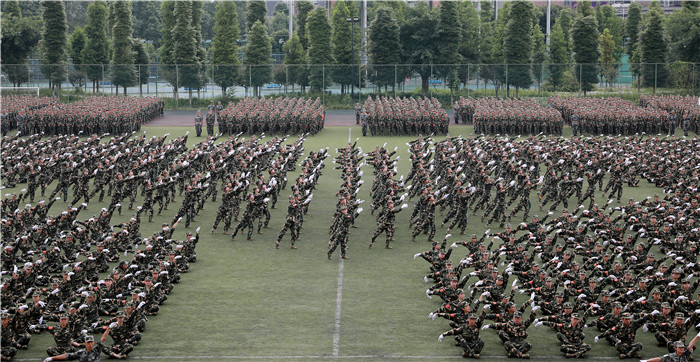 本次军训是学校首次由学生军训教导队组织承训,教官以beat365官网预备役应急分队队员、退役在校大学生士兵为主体。学生教导队自今年3月以来,牺牲了大量的休息时间,系统训练了军训教学法,开训前还专门组织了集训。在教官中,有的已考上外校研究生,有的正在外地紧张实习,有的已毕业回到老家,为了2018级学生军训工作又从不同的地方回到学校。他们“召必回”的行动代表的是成中医学子在学校需要时义无反顾的情怀,更代表着对母校的热爱和眷恋。训练中,很多教官脸被晒伤、脚被磨破、喉咙嘶哑,但是仍坚持带训。正是得益于他们的无私奉献、团结协作与辛勤付出,才为学校在全面深化国防和军队改革、军民融合式发展形势下,探索和实践学生军训自训模式改革创新积累了难能可贵的经验。