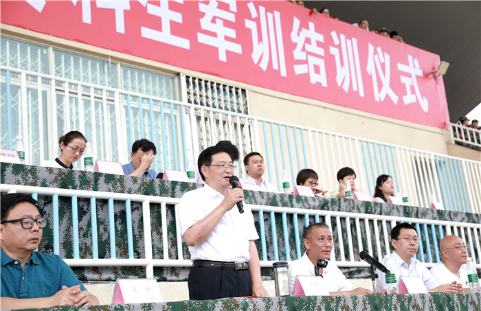沈涛代表学校党政向莅临现场指导工作的部队领导表示热烈欢迎,向辛勤承训的全体教官和工作人员致以崇高的敬意,对全体2018级参训学生经过11天军训所取得的优异成绩表示热烈祝贺。他指出,通过开展学生军训工作,既提高了同学们的政治觉悟,更激发了同学们的爱国热情和国防意识,增强了组织纪律观念,培养了令行禁止、团结奋进、顽强拼搏的过硬作风。他希望同学们要在坚定理想信念、厚植爱国主义情怀、加强品德修养、增长知识见识、培养奋斗精神、增强综合素质这六个方面下功夫,将军训中磨砺的意志和学习的技能融入到大学生活中,承担起中华民族伟大复兴的重任。希望同学们追逐梦想、担当使命、知行合一,品厚德博学之味,尝中医精诚之道,塑精思笃行之形,立中医亘古之姿。