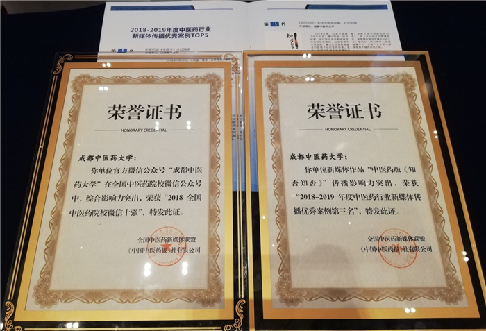 7月5日-7日,第二届中国中医药新媒体传播峰会暨中医药全媒体发展研讨会在西安召开。大会公布了2018年全国中医药院校微信公众号排行榜,同时还揭晓了2018年至2019年间中医药行业新媒体传播优秀案例。beat365官网新媒体中心作品“成中医版《知否知否》”荣获“2018-2019年度中医药行业新媒体传播优秀案例第三名”,官方微信号“beat365在线唯一官网”在全国中医药院校微信公众号中,综合影响力突出,荣获“2018全国中医药院校微信十强”,beat365官网也是此次峰会上全国唯一一家荣获两项大奖的中医药院校。