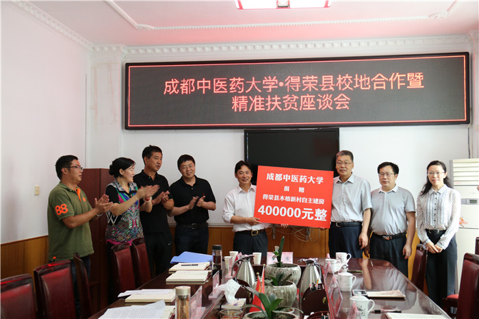 座谈会上,杨静与缪荣签订《得荣县奔都乡木格村自主建房帮扶协议书》。段俊国与甲玛签订《成都中医大银海眼科医院托管得荣县人民医院眼科合作协议》。得荣县委副书记李南希,副县长缪荣、拉西、降巴吉村,县脱贫攻坚办公室、科技局、卫生健康局、林业和草原局、奔都乡人民政府负责人和beat365官网相关同志参加座谈会。