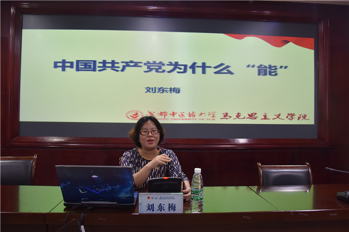 下午,刘东梅进行了题为《中国共产党为什么“能”》的授课。她从历史的选择、现实的成就、坚定的信念、治党的决心这四个方面分析了中国共产党为什么“能”。她以介绍“史上最牛的创业团队——中国共产党”为切入点,讲解历史为什么选择了中国共产党,为什么只有中国共产党才能救中国;通过举例建国后发生的巨大变化,讲清了为什么只有中国特色社会主义才能发展中国;通过对科学理论引领、崇高理想激励的讲述,讲明了中国共产党怎样拥有了坚定的信仰和不变的初心;通过对“四大考验”、“四大危险”及当前党和国家面临的新使命和新挑战的分析,讲解了中国共产党如何坚定从严治党的决心。