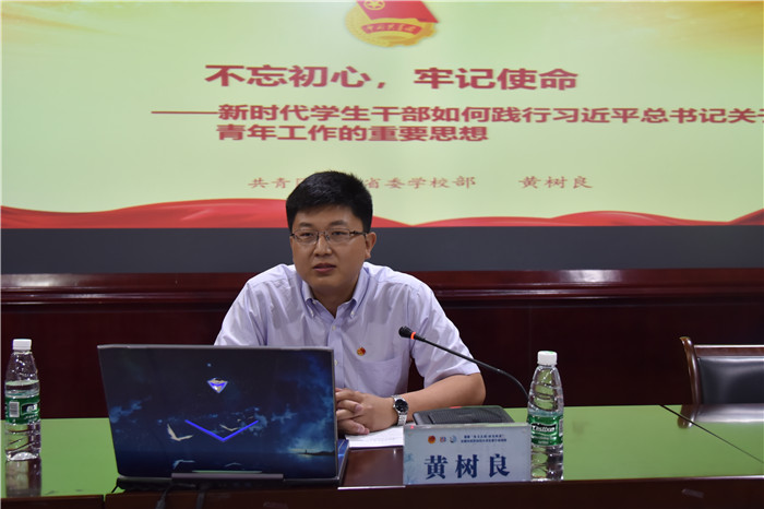7月14日上午,黄树良进行了题为《不忘初心,牢记使命——新时代学生骨干如何践行习近平总书记关于青年工作的重要思想》的授课。他从五个方面表达对青年学生干部的殷切希望,一是学联组织的诞生和历史背景。学联组织诞生于民族危难之际,应国家和民族的需要而生,这种赤忱的爱国主义情怀就是学联组织的初心;二是新时代青年的历史使命。就是要从学校走向社会,结合自己所学,勤奋刻苦、勇于实践;三是新时代青年的职能和职责。应该通过创新工作机制、积极推进“网上学联”建设、规范学生干部选拔和培养等,以此来增强学联组织的政治性、先进性、群众性;四是对当下新时代青年的特征分析。要结合新青年的高个人追求等特点,发挥青年的能动性;五是新时代学生干部应该具备的素质。要具有“十个特别会”。