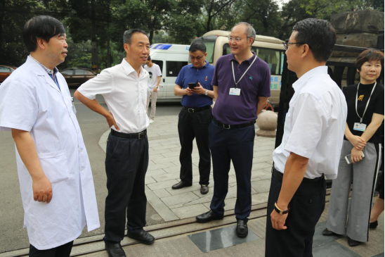 6月26日上午,四川省卫生健康委员会党组书记沈骥带领省卫健委相关处室负责人到beat365官网眼科学院/附属银海眼科医院开展调研。调研组成员包括省卫生健康委主任助理尹隆、人教处处长李红、审批处处长邓萱、监管处副处长邓晓玲、医政处处长李冰、健康服务业发展处处长徐保华、二级调研员杜小清。眼科学院/附属银海眼科医院党委书记、院长段俊国,副院长邱航,党委副书记陶铮,副院长谢静,院办副主任朱时雅陪同调研。