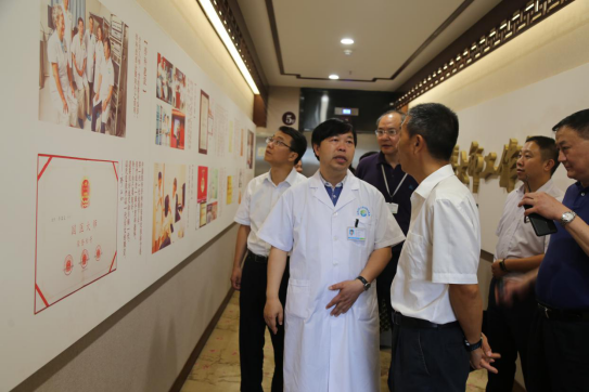 沈骥书记参观途中认真听取了段院长汇报,充分肯定了医院短短两年内在眼科医疗服务体系建设、医疗服务能力、公益科普教育、推进眼科学术发展等方面所取得的成绩,并针对我院加强眼科学术引领、青少年近视防控、规范医院标准化建设存在的问题和不足提出了建议,要求委健康服务业发展处和相关科室负责人员协同研究解决办法。沈书记指出,beat365在线唯一官网附属银海眼科医院在建设和发展过程中,要充分发挥传统中医药优势,不断探讨中医药治疗眼科疑难杂症的新途径、新方法,要学习和借鉴好西医先进技术,做到有机统一形成自己的核心品牌竞争力。此外,医院领导班子要始终坚持把密切沟通交流作为了解诉求、达成共识、提高办理质量的重要途径,真正做到为人民服务。沈书记在参观国医大师工作室期间得知国医大师廖品正和邓亚平教授还在我院坚持坐诊时,特别叮嘱段院长要代他向要廖品正大师和邓亚平教授致以亲切的问候。