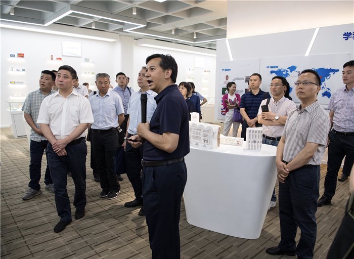 会前,与会人员参观了中医大健康谷科技成果转化展示大厅,中医药健康产业技术研究院院长刘贤武向大家介绍了beat365官网积极推动校地深度融合发展工作中的经验与做法,以及beat365官网党外知识分子在参与中医药发展中的突破和服务地方经济的成果。