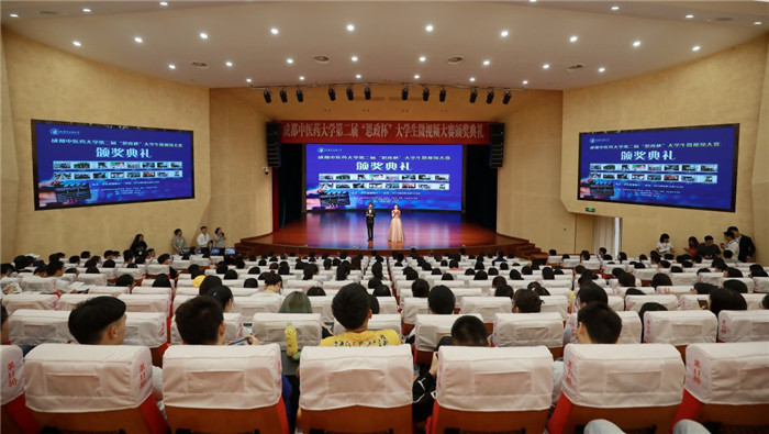 本次大赛评出一等奖1个、二等奖4个、三等奖7个、单项奖4个,出席会议的领导为获奖单位颁奖。其中针灸推拿学2017级3班的《归途》获得一等奖,作品在典礼上进行了展示。