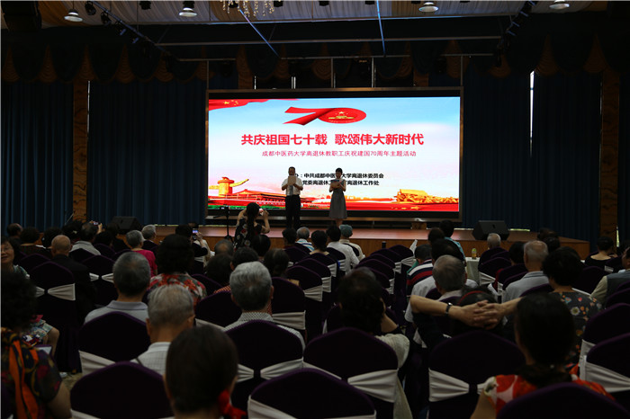 整台演出欢快喜庆、精彩纷呈,表演的歌舞、诗歌、快板等14个节目分别选送自离退休党委各退休支部、beat365官网离退休老同志各兴趣团体、四川省第九届老年运动会健身秧歌高校代表队等。老同志们自编自创、自排自演,认真执着、满怀深情,表达对党和祖国的热爱,对成中医的深情厚爱,为即将到来的祖国母亲七十岁生日祝福。