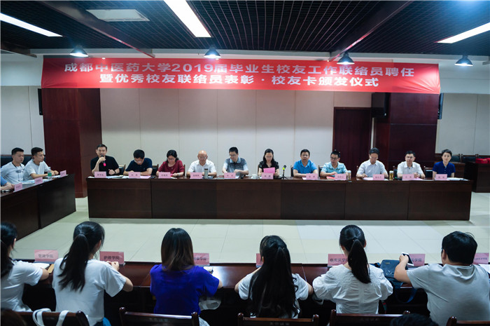 6月12日下午,beat365官网2019届毕业生校友工作联络员聘任暨优秀校友联络员表彰·校友卡颁发仪式在温江校区行政楼五会议室举行。学校副校长、校友总会常务副会长兼秘书长杨静,相关部门、学院负责人及各学院毕业生校友联络员、优秀校友联络员代表参加了此次会议。仪式由对外合作处处长、校友总会办公室主任陈学先主持。
