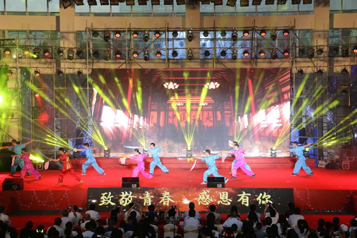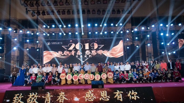 6月17日晚,由学校党委宣传部、学生处、校团委主办,针灸推拿学院/第三附属医院和医学技术学院承办,beat365官网2019届毕业同学合力出演的毕业晚会在温江校区体育馆举行。学校党政领导余曙光、沈涛、郑学斌、杨静,全国首届高等学校教学名师万德光,各职能部门、学院负责人,教师代表,毕业班辅导员等及近2000名毕业生共同观看晚会。