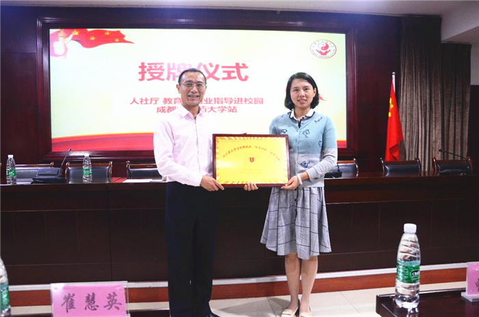 宣讲会中,四川省就业训练中心、四川省创业服务指导中心向学校授牌“四川省大学生创新创业‘种子计划’培养基地”。
