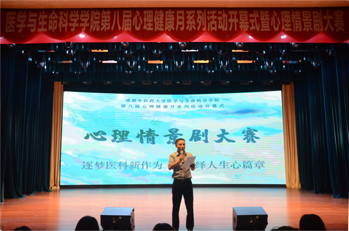 张勤修为本次活动致辞。他表示,学院作为学校唯一的心理健康教育基地,一直致力于打造线上线下丰富多彩的心理健康教育活动,引导学生树立阳光心态,追求幸福人生。他强调,同学们作为青年学子,学业之余还应培养丰富的精神生活,希望同学们在心理情景剧的舞台上,展示独属于当代青年的风采,以梦为马,不负韶华。