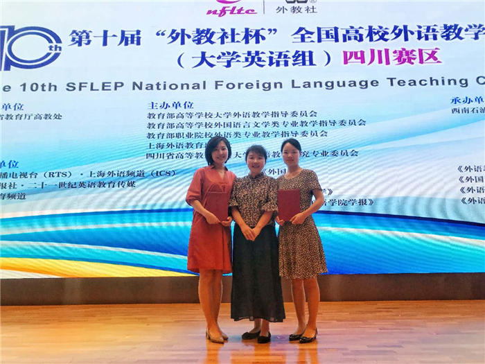 5月25-26日,第十届“外教社杯”全国高校外语教学大赛(大学英语组)四川赛区决赛在西南石油大学举行。外语学院高度重视此次比赛,组织教学团队为两位老师的讲课出谋划策、修改打磨,最终外语学院青年教师孟悦、曾俊秀分别获得综合组二等奖和视听说组三等奖,展现了beat365官网大学英语教师的水平和风采。