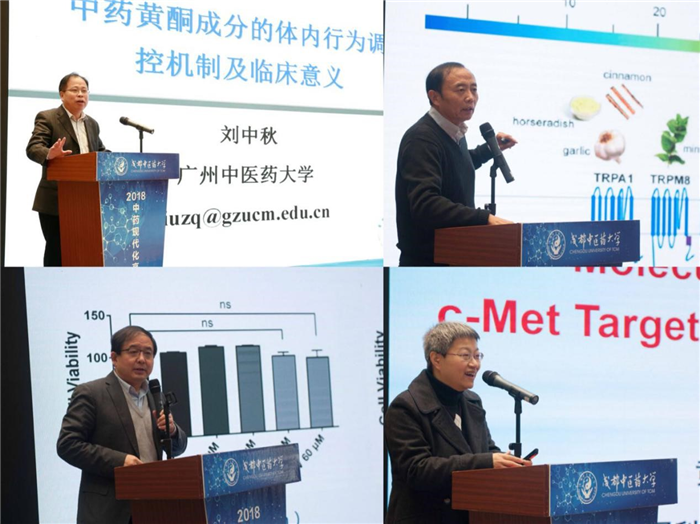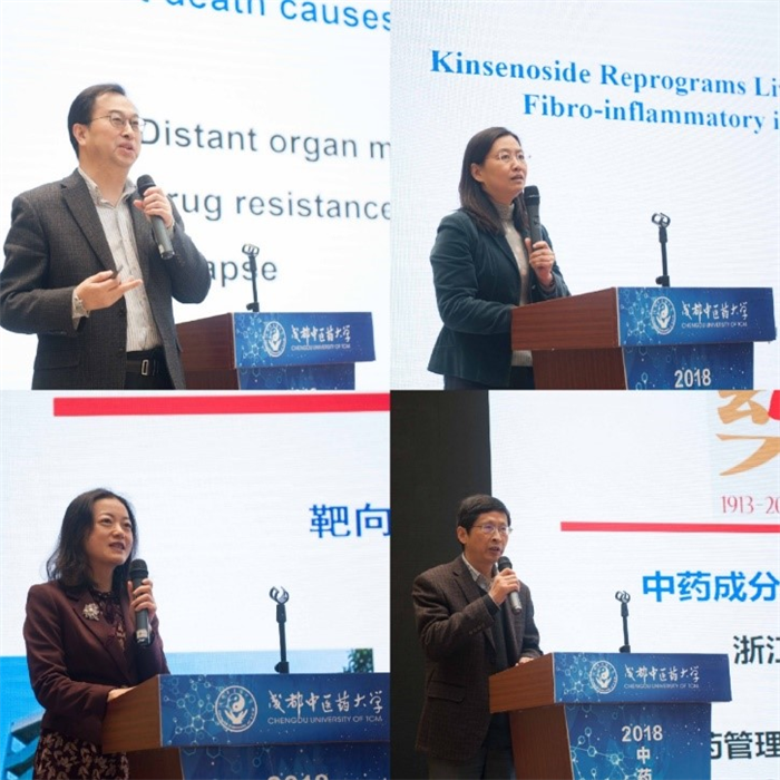 上午,第一场报告会由四川大学黄灿华教授主持。广州中医药大学刘中秋教授作了题为《中药黄酮成分的体内行调控机制及临床意义》的报告;青岛大学王克威教授作了题为《靶向离子通道天然药物活性成分的筛选与药理学评价》的报告;南京大学华子春教授作了题为《中药抗肿瘤活性物质及其机制:重筛选、再认识》的报告;中科院上海药物研究所黄锐敏研究院作了题为《肿瘤靶向治疗的可视化研究探索》的报告。