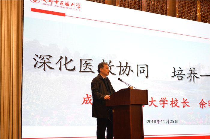 余曙光作“深化医教协同,培养一流人才”的主题报告。他指出,要建立医教协同育人新机制,培养具备一流学习能力、一流思维能力、一流临床辨证施治能力、一流沟通能力的医学人才;以“三协三共”理念建立医联体联盟,即医联协作、医教协同、医研协进、资源共享、管理共治、发展共赢;坚持医院“医学院化”发展思路,“早临床,多临床、反复临床”的理念,开设“一体化教学班”,进行同质化教学管理。