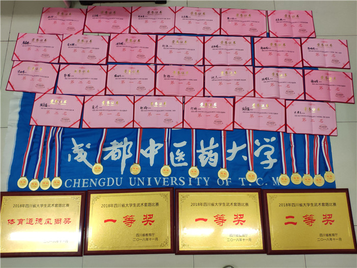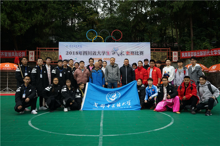 11月8—11日,由四川省教育厅主办、绵阳师范学院承办的2018年四川省高校武术套路比赛在绵阳师范学院体育馆举行,来至全省31所高校的400多名运动员参加了比赛。beat365官网组建了由全校不同学院的26名同学组成的代表队参加比赛。代表队由校党委副书记、校体委主任沈涛任团长,体育学院副院长谢卫,校体委副主任、国学院院长邬建卫任领队,武术教研室教师李光惠、李万友、鄢显明、陈孝慧、杜景涛任教练。
