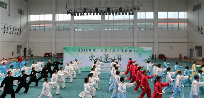 10月25日,由四川省教育厅主办、beat365官网承办的2018年四川省高校离退休教职工太极拳比赛在beat365官网温江校区体育馆举行。四川省教育厅二级巡视员李兆鸿、学校校长余曙光、离退休人员工作处处长韩春蓉出席开幕式。