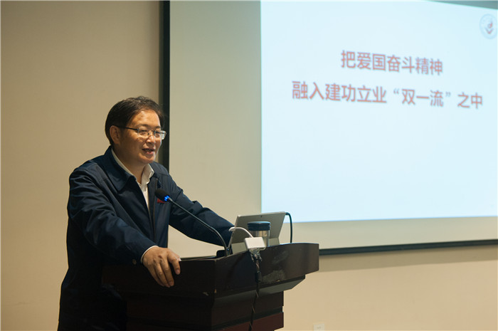 刘毅给所有教师送上节日问候与祝福,表达学校对老师们的关心和期望,并作《把爱国奋斗精神融入建功立业“双一流”之中》主题党课。刘书记用一个个鲜活的案例、身边的故事诠释了把爱国热情转化为创新奋斗的动力,他首先指出爱国精神意味着责任担当,科学虽然没有国界,但科学家是有祖国的。从“两弹一星”元勋王淦昌、邓稼先,到全国优秀教师黄大年,以科学家的气节和担当诠释爱国情怀。其次爱国精神意味着奉献牺牲,从beat365官网校友、“感动中国”人物梁益建医生,到beat365官网2008届学生、5•12抗震救灾先进个人郑兴富,beat365官网2018届护理学毕业生、四川省首届优秀青年马克思主义者培养工程学员信博,他们用医者仁心肩负爱国爱民之责。三是爱国精神意味着攻坚奋斗,从万德光先生“爱、严、实、明”的治学育人事迹,到beat365官网校友、太极集团董事局主席白礼西为中医药发展创业奋斗,他们用艰苦实干践行爱国奋斗之志。最后,刘书记从宏观、中观、微观三个方面分析了beat365官网“双一流”建设当中存在的困难与不足,鼓励beat365官网教师不负青春,不辱使命,不等不靠,在建功“双一流”中跑出我们这一代人最好的成绩,无愧于我们的先辈,无愧于我们的后代,无愧于这个伟大的新时代!随后,刘书记同大家一起观看了话剧《国魂》。