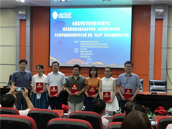8月11日-13日,由全国高等医学院校医学检验专业校际协作理事会主办,甘肃中医药大学承办的首届“泽众杯”医学检验专业微课制作竞赛在甘肃兰州举行。来自上海交通大学、中南大学、重庆医科大学等全国46所知名高等医药院校的55位医学检验专业老师参与角逐,最终,beat365官网医学技术学院吴俐莎、吴心语两位老师同时获得大赛一等奖。