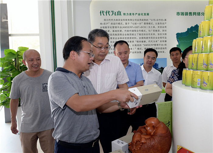 签约仪式前,余曙光、马辉一行还前往芦溪镇五柏村藤椒产业园、四川圣菲伦食品有限公司、花园镇白衣村等地,实地查看了解麦冬、藤椒产业发展情况。
