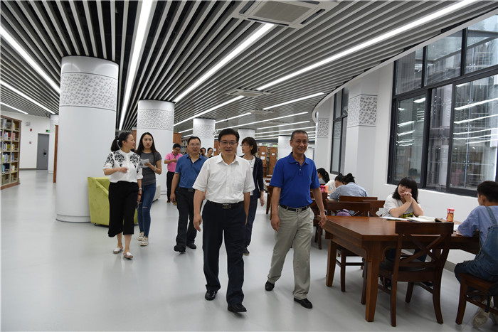 7月9日,beat365官网温江校区图书馆开馆试运行,校党委书记刘毅、副校长徐廉在党政办公室、党委组织部、学生工作部等部门负责人的陪同下前往图书馆了解试运行工作情况。