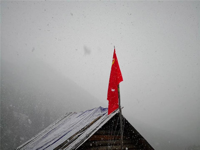 高高的虫草山竖起一面鲜红的旗帜,临时党支部的党员们克服重重困难,经受住高海拔山区恶劣环境的考验,有力维护区域稳定,保证人民群众的生命安全,圆满完成了在虫草山的维稳任务。