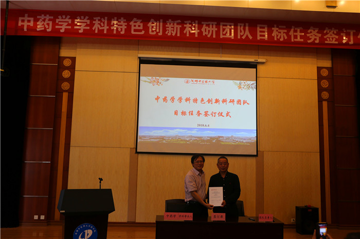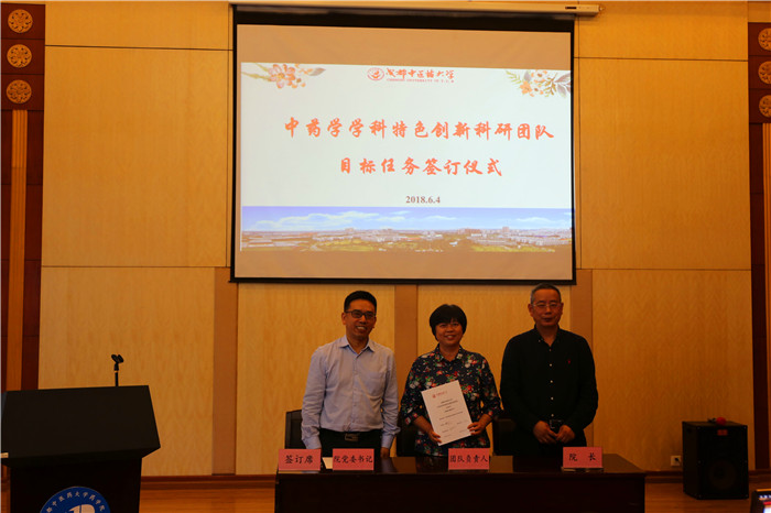 6月4日,药学院在药学楼学术报告厅举行了中药学学科特色创新科研团队目标任务签订仪式。校党委书记刘毅、副校长彭成出席仪式,发展规划处处长吴纯洁、副处长吴曦,科技处处长刘友平,药学院党委书记刘世云、院长傅超美、副院长邓赟和21个特色创新科研团队负责人、成员等参加仪式。仪式由药学院副院长裴瑾主持。