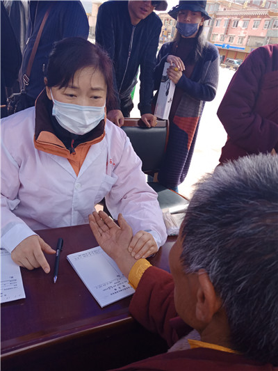 6月7号上午,第二场义诊活动分别在藏医院和金马广场同时进行,其中,藏医院由针灸科专家杜怀斌和李政杰坐诊,金马广场由内科专家罗燕、心血管科专家钟丹、耳鼻喉科专家黄洪婕坐诊。有的专家高原反应较为强烈,甚至整夜失眠、全身乏力、头晕呕吐,但是为了顺利进行义诊,专家们克服困难、顶着烈日、耐心细致、不辞辛苦为前来就诊的群众仔细诊断,得到当地群众的交口称赞。义诊从上午9:00左右持续到中午12:30,有近200名群众得到了专家的治疗。