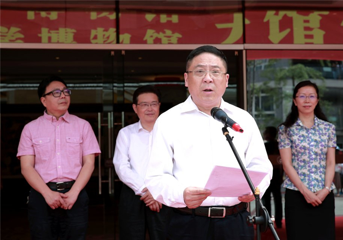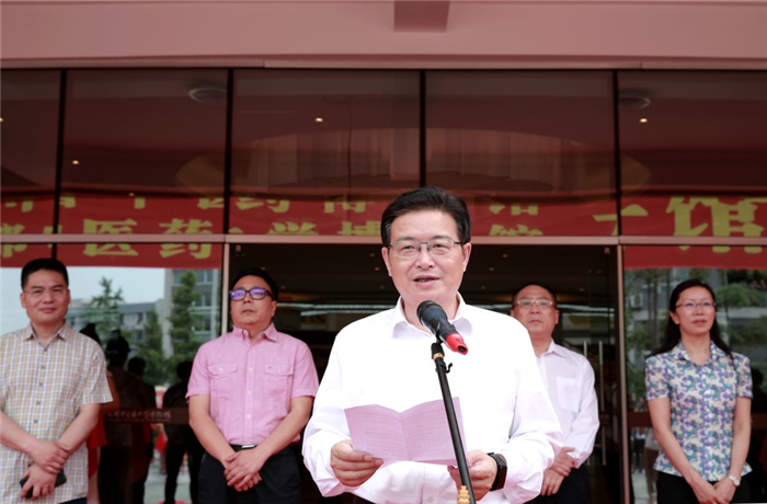 刘毅致辞,对出席开馆仪式的领导嘉宾表示欢迎,对关心支持学校建设发展的各界朋友表示感谢。他强调了博物馆对传播知识、弘扬文化、促进科研、培育精神的重要性,简要回顾beat365在线唯一官网博物馆的发展历程。刘毅指出,新馆的建成开馆,标志着学校馆藏文物和藏品保存环境标准化建设迈向了新的阶段,意味着中医药高等教育以文化人、以文育人,研究发掘中医药文化内涵软实力踏上了新的征程。他希望博物馆以“双一流”建设为核心,提升人文研究新内涵,打造文化传承新载体,开拓学科建设新领域,构建学术交流新平台,丰富人才培养新途径,搭建科学研究新基地,以更好的环境、更优的水平、更人性化的服务让更多的中医药爱好者和学子了解中医、感受中医、认识中医、坚信中医,为公众解读中医药文化内涵,弘扬祖国传统文化精粹、彰显中医药文化自信,推动中医药文化创造性转化、创新性发展,真正肩负起实现中国梦的光荣使命。