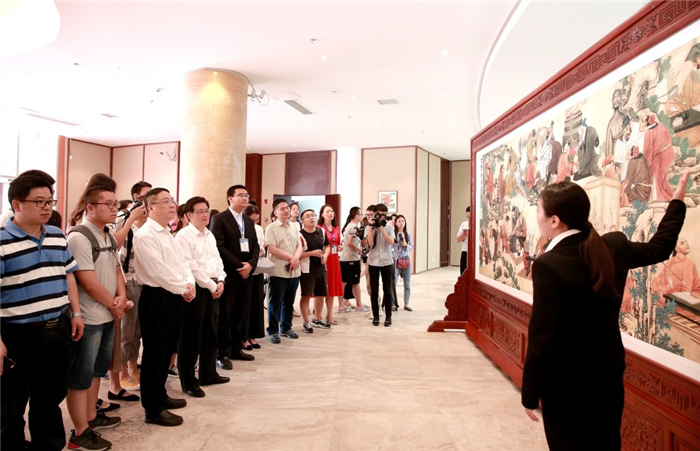 米银军、张复生、刘毅、沈涛、杨静共同为博物馆开馆揭牌,并一起参观博物馆和国学项目展演。