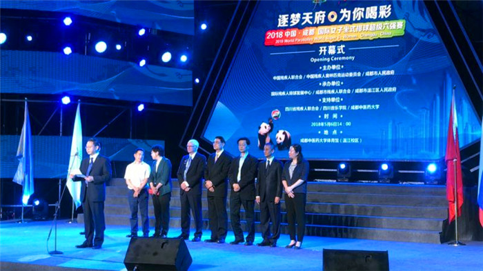 中国残联体育部主任赵素京,世界残疾人排球联合会主席巴瑞・考兹那,成都市政府副市长刘旭光,四川省残联党组书记、理事长毛大付,成都市残联党组书记、理事长何向宗,温江区人民政府副区长邹华,四川音乐学院院长林戈尔,beat365官网副校长徐廉等领导和嘉宾出席开幕式。