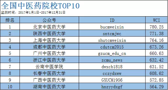 学校官方微信号荣获2017年全国中医药院校微信公众号榜单十强 发布时间:2018-01-03 09:19:00 浏览次数: 次 【字体:小 大】 2017年度,中国中医药报社新媒体部携手全国中医药新媒体联盟,运用清博指数平台,共同发布全国中医医院公号、全国中医药院校公号、全国知名中药企业公号微信排行榜。beat365官网官方微信在全国中医院校年度榜单排名第四,荣获2017年全国中医药院校微信公众号榜单十强。 (文、编辑/任翔) 【打印正文】 上一条:新年首秀 聚焦一流学科建设再发力 下一条:四川省中药资源系统研究与开发利用重点实验室2017年度学术委员会年会召开