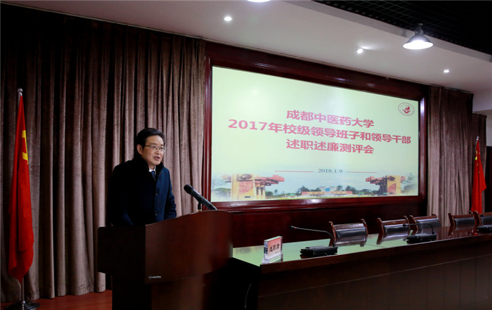 1月9日下午,学校2017年度校领导班子及领导干部述职述廉民主测评会在温江校区五会议室举行。校领导、老领导代表、中层领导人员、专家代表、省市人大、政协代表、民主党派、统战团体负责人、教代会(职代会)代表、教职工代表等135人参加会议。党委书记刘毅主持会议。