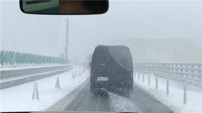 当天中午,雅西高速石棉段天降大雪,工作组先遣人员和车辆异常艰难地穿越冰冻路面,勇敢地排除险情,如期到达目的地。