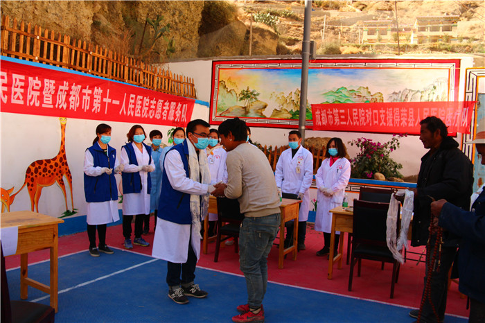 为进一步落实中央精准扶贫、省委卫生扶贫的指示,协助解决深度贫困地区——得荣县俄木学村村民看病难问题,12 月16 日,beat365官网牵头组织了成都市第三人民医院、成都市第十一人民医院、成都儿童专科医院、成都市青羊区中医医院共10 名援藏医疗卫生专家,到俄木学村开展大型义诊活动,为藏区群众进行免费体检、诊疗和健康咨询。