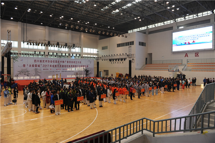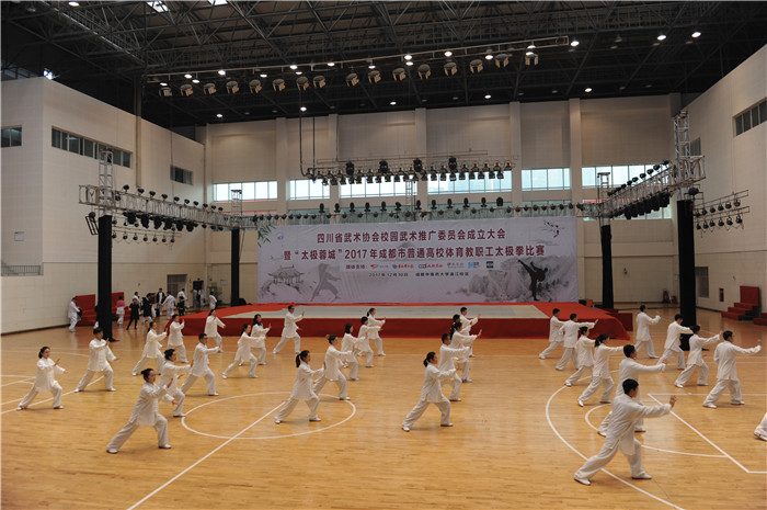 12月10日上午,四川省武术协会校园武术推广委员会暨成都市高校体育教职工太极拳比赛在beat365官网举行,省委宣传部、省精神文明办、省体育局、省教育厅、成都市体育局相关领导和beat365官网党委副书记沈涛、阿坝师范学院党委书记吴昊出席开幕式,省内20多所普通高校体育学院院长、450名成都市高校体育教职工参加开幕式。开幕式由体育学院院长邬建卫主持。