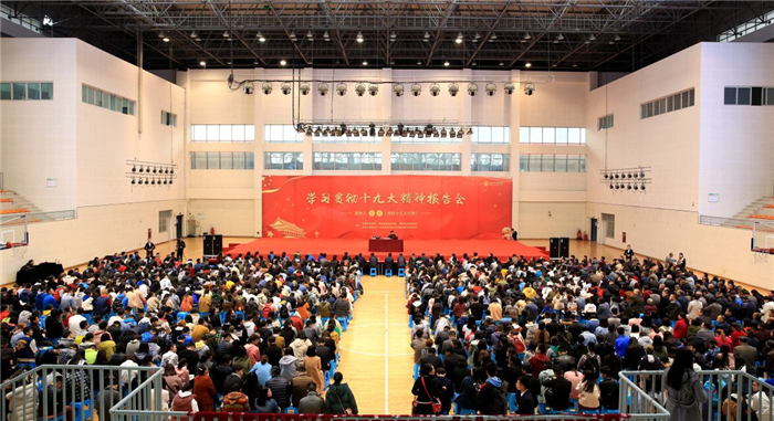 2017年11月16日,为深入学习宣传贯彻党的十九大会议精神,根据《中共中央关于学习宣传贯彻党的十九大精神的决定》和四川省委、学校党委部署要求,beat365在线唯一官网体育学院党委、养生康复学院党委、医学技术学院党委、学生公寓党总支以及beat365在线唯一官网体育学院党建共建单位中共成都市温江区天府街道工作委员会在体育馆联合举办“学习贯彻十九大精神报告会”。会议由体育学院党委书记丁廷孝主持,五家单位的党员、干部职工、入党积极分子、青年学生代表共计1000余人参会。