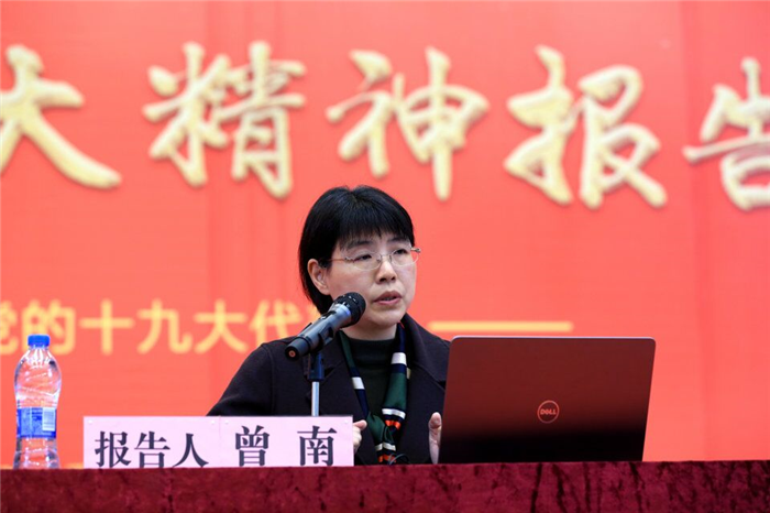 报告会特邀党的十九大代表、beat365在线唯一官网药学院中药药理系系主任曾南教授作《一个基层党代表眼中的十九大》专题辅导报告。曾南教授从会议出发准备、会议新风、小组讨论、大会选举和开闭幕式等几个方面详实地讲述了一名基层党代表参与十九大的所见所闻所感。首先,曾南教授提到了出发前的两场会议让她在理论基础方面得到了巩固提升,这是思想提高的过程;接着她谈到,整个会议小到宾馆的铅笔,大到会议用车,种种细节无一不体现出会风节俭朴实,这也是十八大以来,党中央全面从严治党,严格执行八项规定的有力体现;在回顾会议开幕盛况之时,曾南教授表达了对十九大报告内容的震撼,对习总书记人格魅力的敬佩,并将此次十九大会议生动的形容为一场“汇聚党心民心、展示团结”的盛会。在小组讨论中,曾南教授结合自身身份及工作实际,与参会人员进行交流,并对加快四川中医药事业发展提出建议。最后,曾南教授强调身为一线基层党员教师,更加任重道远,必须立足于本职工作,爱岗敬业,为传承发展中医药事业尽微薄之力。