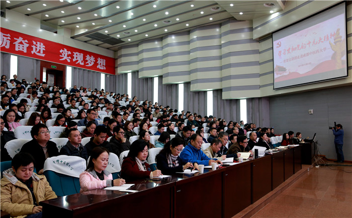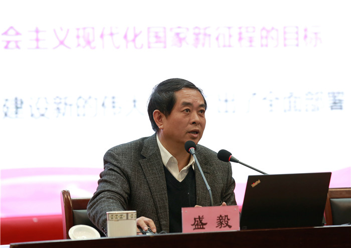 11月23日,学习贯彻十九大精神省委宣讲团成员、四川省社科院研究员盛毅来学校作报告,为师生“划重点”,深入解读十九大精神。报告会由党委书记刘毅主持,师生代表近400人聆听报告。