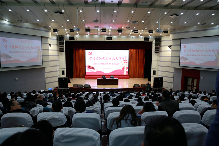 盛毅以《全面开启中国现代化建设新征程》为题,分别从党的十九大的主题及主要成果,习近平新时代中国特色社会主义思想重大意义及深刻内涵,过去五年的历史性成就和历史性变革,中国特色社会主义进入新时代的重大意义和历史使命,我国社会主要矛盾的变化,两个“一百年”奋斗目标的战略部署,我国经济社会发展重大战略部署,坚定不移推进全面从严治党等八个方面深刻阐释了党的十九大的重大意义和历史贡献。报告立足四川工作,阐述“治蜀兴川”重大战略部署,在谈到四川“实施健康四川战略,深化医药卫生体制改革,大力发展养老健康产业”,盛毅指出,beat365在线唯一官网有学术、科研、人才等优势,应当大有作为。在阐述四川“全面落实坚定文化自信、推动社会主义文化繁荣兴盛的要求,切实加强思想文化建设”,盛毅指出,繁荣巴蜀文化,beat365在线唯一官网在面向“一带一路”沿线等国家的文化交流中也能凸显优势。盛毅希望全体师生肩负起迈进新时代、开启新征程、谱写新篇章的重大使命和责任。