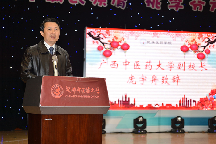 庞宇舟代表友好单位致辞,院友代表甘孜州乡城县红十字会常务副会长洛绒泽仁致辞,在校学生代表南措发言,他们各自抒发了对民族医药学院建院十周年的祝贺和喜悦之情。